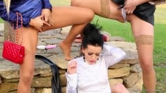 Encontraram-na sozinha no jardim, então a levaram para um trio e a amarraram para poder usar seu corpo e mijar nela no final.