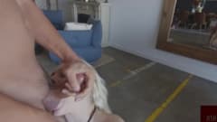 Essa loira é feita para felação e tem uma face de ejaculação facial depois de ter sugado o galo do seu amante por um longo tempo.