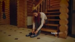 Acorde de manhã completamente nu, vá com ela ao banheiro, depois pratique ioga e mostre sua buceta doce e passe o dia inteiro com ela.