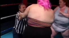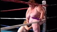 Sexo anão depois de uma luta na praça. As mulheres vão tirar as roupas do juíz, chupar seu pinto e foder com ele.