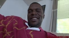 Um homem negro ajuda a bela loira Madison com sua bicicleta. Em agradecimento, ela lhe dá sua buceta.