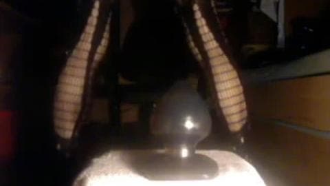 Gay em collants pretos fode um enorme dildo. Ele espalha seu grande traseiro com o enorme dildo e parece tão fácil