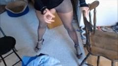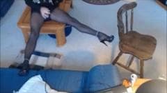 Gay amador com pernas longas realmente agradáveis nos mostra suas habilidades de masturbação na frente da câmera. Ele veste diferentes meias sexy
