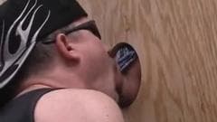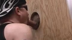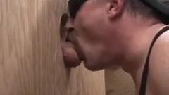 Guy dá Blowjob via buraco de glória para engolir muita porra