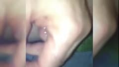 O gay gordo e peludo põe um anel na sua piça e bate punheta com muita força enquanto segura a câmera perto - veja ele ejacular!