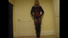 Um homossexual chupando seu próprio pinto com uma peruca loira em roupas íntimas e meias sexy! Ele também se fode no cu sentado num dildo 😮