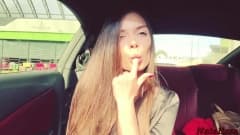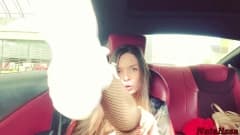 Essa garota está com fome de um pau duro e ela vai chupar ele e masturbar até que ele cuspa a porra para ela mesmo no carro
