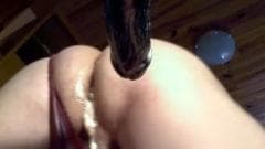 Um gay gordo e maduro tem seu cu alargado e é fodido com um enorme vibrador preto. Ele gosta muito e tem muito prazer