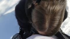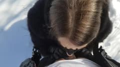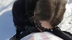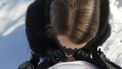 Cristall Gloss chupando pênis na neve para um tratamento facial