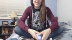 Esta garota está em casa com um dildo no olho do cu e um dildo no buraco da vagina até que esteja pronta para se ejacular com força