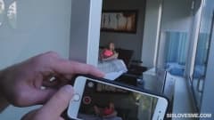 A loira sexy Tiffany Watson estava masturbando sua buceta na cama quando foi espionada por dois homens, aos quais ela concordou em fazer sexo oral!