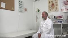 Esse homem idoso finge ser ginecologista e entra sorrateiramente em uma clínica para esperar uma paciente, de quem ele tirará vantagem sexual para transar.