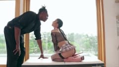 Essa linda mulher é sublime e muito pequena em comparação com o grande pênis preto do cara que vai foder essa buceta peluda.