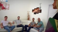 Tiffany Rousso é uma loira que se diverte muito no meio desse gangbang com caras que a cobrem de porra