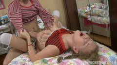 O cara vai fodê-la com tanta força que ela não consegue nem se levantar, pois sua bunda está cheia de porra quente. Ela tem peitos enormes balançando