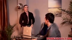 Estes dois novinhos, estressados do trabalho, resolvem partilhar massagem e seguem para boquetes e uma boa foda. No fim eles gozam juntos e lambem a porra!