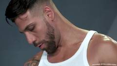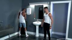 FX Rios e Trent King, fodendo e chupando com força no banheiro. Esses pauzudos amam um prazer.