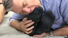 Este senhor de cabelos grisalhos adora acariciar, tocar, massagear e cuidar dos pés de seus belos amantes dominantes - veja por si mesmo!