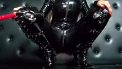 Danni Levy tira sua roupa de látex e acaricia seus seios grandes