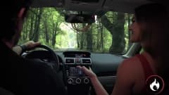 A sexy Milf Kenzie Madison encontra um cara maduro na floresta e consegue uma boleia para foder na sua casa.
