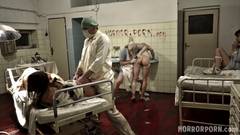 Pornografia extrema num cenário de terror em um hospital psiquiátrico. Enquanto o médico fode a buceta das pacientes, a enfermeira as aterroriza!