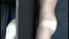 O loiro estava se sacudindo sozinho, e decidiu ir atrás de uma parede e mergulhar seu pau em um buraco. O asiático agarra o pau dele e chupa com vontade!