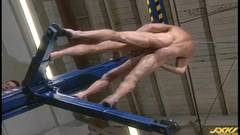 Um trio excitante, mas perigoso, eles fodem pendurados numa garagem.