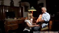 Seu chefe é um velho pervertido, mas ela não se importa. Esta loira necessita de aumentar seu salário e sabe que vai ter sucesso depois duma bela foda!