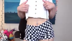 Morena gamer excitada tira a roupa ao vivo para a câmera e começa a se masturbar