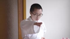 Garota com uma bela buceta se masturbando depois da aula de karatê, que sempre a deixa super excitada