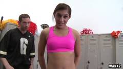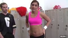 Uma morena sensual e gostosa está no vestiário com um rapaz que ela quer chupar como a putinha que é...