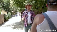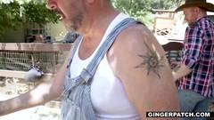 A linda ruiva está ansiosa para fuder este cowboy que no fim enche a sua boca de porra e cobre seus grandes peitos