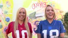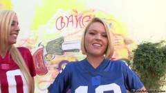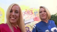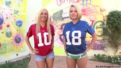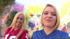 Pênis duro na bunda de duas líderes de torcida universitária