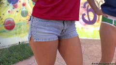 Aqui temos duas lindas líderes de torcida curtindo o mesmo pau em uma cena cheia de sexo anal imperdível com Mike Adriano fodendo ao ar livre.