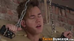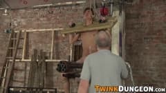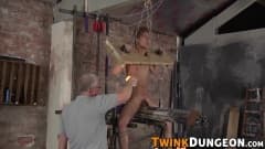 Um velho fetichista amarra Justin com as mãos entrelaçadas, então começa a chicoteá-lo, derrama cera de vela quente em seu corpo e bate uma punheta gostosa
