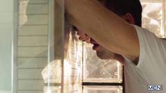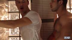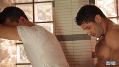 Theo Ford e Dato Foland, dão prazer um ao outro no chuveiro com uma foda anal intensa.