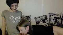 Esses dois amigos travecos, vão gozar na pica um do outro na frente da câmera, enquanto batem punhetas e boquetes.