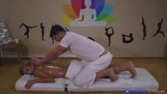 Essa garota colombiana vai receber uma massagem com muito óleo, sua bunda vai ser massageada e ela vai masturbar o massagista com os pés.
