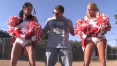 Estas duas líderes de torcida decidem oferecer um belo presente para o melhor jogador de futebol do dia: uma foda gostosa em um ménage à trois!