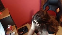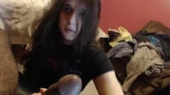 Essa transexual está em casa com o namorado e chupa o pau grande e preto dele em uma webcam antes de inserir o vibrador em seu cuzinho apertado.