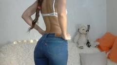 Essa linda morena tem um momento quente enquanto mostra seu corpo em jeans e depois sem roupas