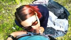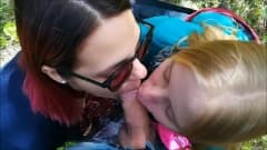Duas garotas muito ousadas competem para ver quem recebe mais esperma do galo do cara que conheceram no parque.