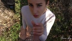 Anna Rey se ajoelha para um bom boquete na floresta