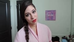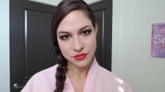 Ashley está se preparando para uma festa, ela está vestida com cinta-ligas e saltos sexys. Ela suga na garganta profunda e pega o jato no seu rosto.