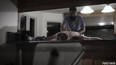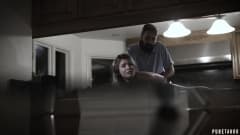 A jovem puta seduz seu tio na cozinha e se diverte muito