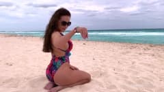 Katie Banks nos leva a uma bela praia, volta para o hotel e quer ter sua buceta depilada e já molhada penetrada.