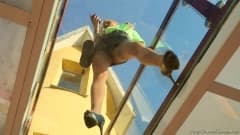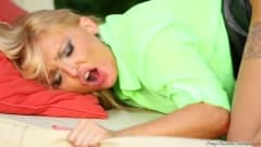 Ele viu essa loira boazona do vidro e ganhou tesão. Foi seduzido a seguir ela até o jardim para foder com força.