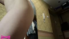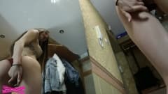 Uma morena sexy de cabelos compridos experimenta várias tangas para deixá-lo excitado com sua bunda firme e redonda.