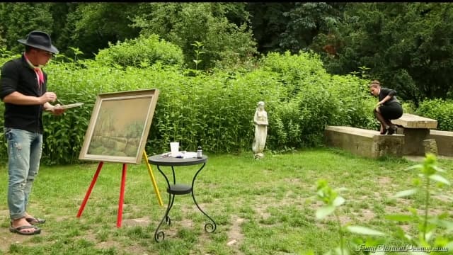 Ele é um artista gostoso que transa com essas duas fãs dele no jardim e gosta de mijar nelas