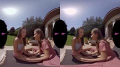 Duas jovens dispostas a se divertir em um vídeo de RV